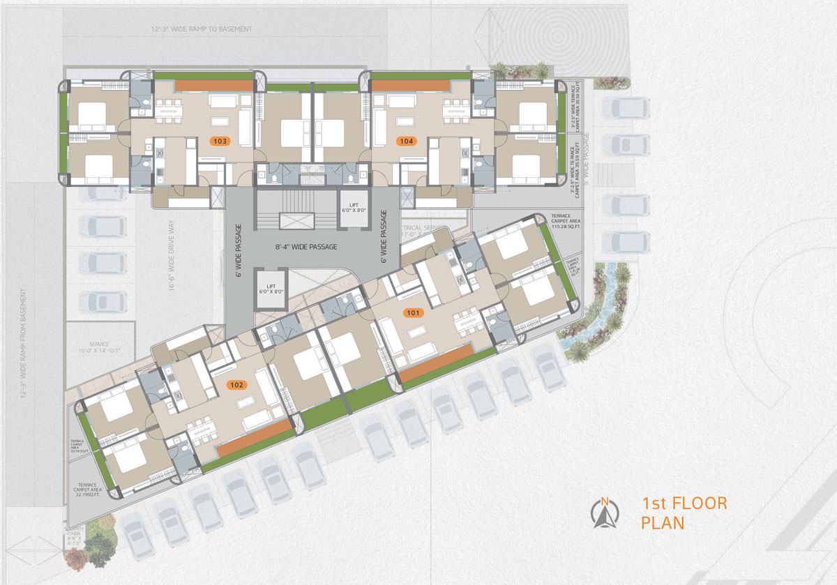 RCC Frame structure, internal walls with putty & primer external walls with weather-proof paint over double coat plaster minimum columns & beams for maximum flexibility in Interior planning
